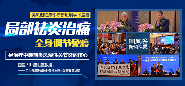 会上,北京协和医院骨科主任杨波、首都医科大北京友谊医院风湿免疫科主任陈乐天、上海强直医院(专注风湿免疫病)重症类风湿医生任鸿军、陈付彩等指出:类风湿性关节炎患者要达到良好的治疗效果,科学定位炎症,局部祛炎治痛是第一步,修复受损骨质,其次全身免疫调节,使机体处于良性循环是治疗中晚期类风湿性关节炎的核心。